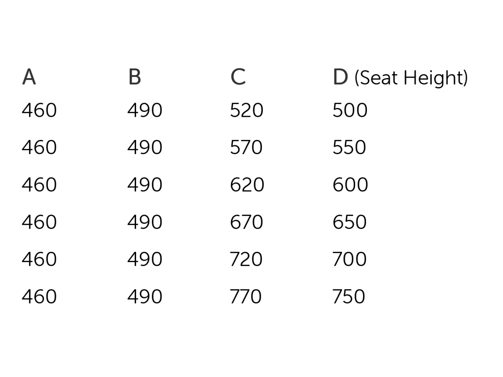 Available in the following dimensions (mm):
